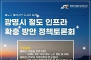 [데일리엔뉴스 이종성 기자] 광명시가 철도 인프라 확충을 위한 중장기 전략을 마련하고자 15일 정책토론회를 열고 주요 현안을 집중 점검한다. 신천–하안–신림선 추진 현황부터 철도 음영지역 개선, KTX광명역의 미래 역할까지 시의 철도정책 전반을 논의하는 자리다. 토론회는 15일 오후 3시 광명시청 대회의실에서 진행된다. 별도 신청 없이 누구나 참석할 수 있으며, 전문가 발표와 시민 질의응답이 포함돼 정책 완성도를 높일 계획이다. 첫 발제에서 박승원 시장은 신천–하안–신림선 등 주요 철도사업의 진행 상황과 향후 계획을 설명한다. 이어 전교석 아주대 교수는 광명시 철도 접근성과 음영지역을 분석하고 발전 방향을 제시한다. 나희승 전 코레일 사장은 유라시아 평화철도 구상 속에서 KTX광명역의 미래적 역할을 논의한다. 이후 유정훈 대한교통학회장을 좌장으로 한 패널토론이 이어지며, 시민과 전문가가 함께 철도 인프라 확충 방안을 심도 있게 논의할 예정이다. 광명시는 토론회에서 도출된 의견을 중장기 철도정책에 반영해 ‘미래 철도도시 광명’ 실현 전략을 체계화할 방침이다. 박승원 광명시장은 “철도 정책의 현황과 과제를 시민과 공유하는 중요한 자리”라며 “광명의 미래 교통환경
